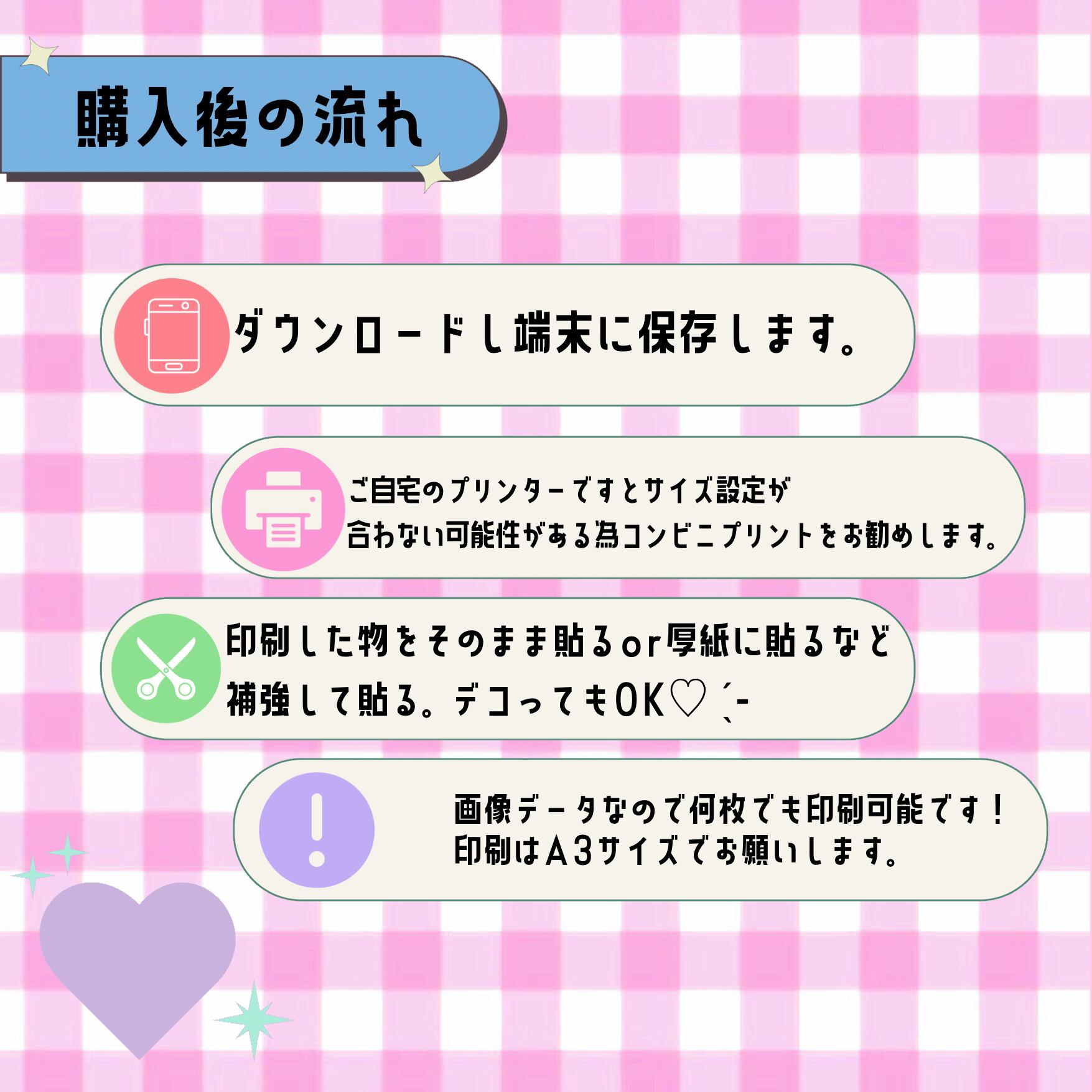 *ご家庭のプリンターは印刷設定により、サイズが合わない可能性があります。印刷する際はコンビニでの印刷を推奨致します。サイズはA3サイズです。